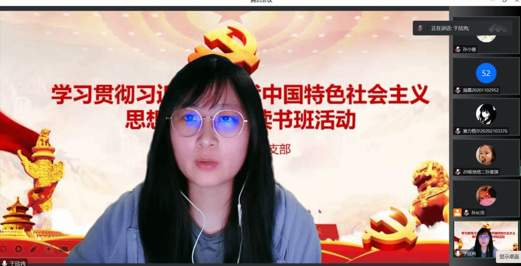 本期读书班上,参与的学生党支部全体党员聚焦专题学习内容,全面深入学习贯彻习近平新时代中国特色社会主义思想,坚持读原著学原文悟原理,进一步加深了对党的创新理论的理解、领会和把握,完成本期支部指定学习任务。其中正式党员于欣冉、于舒文、张神宝、张帅做集中领学并交流发言。