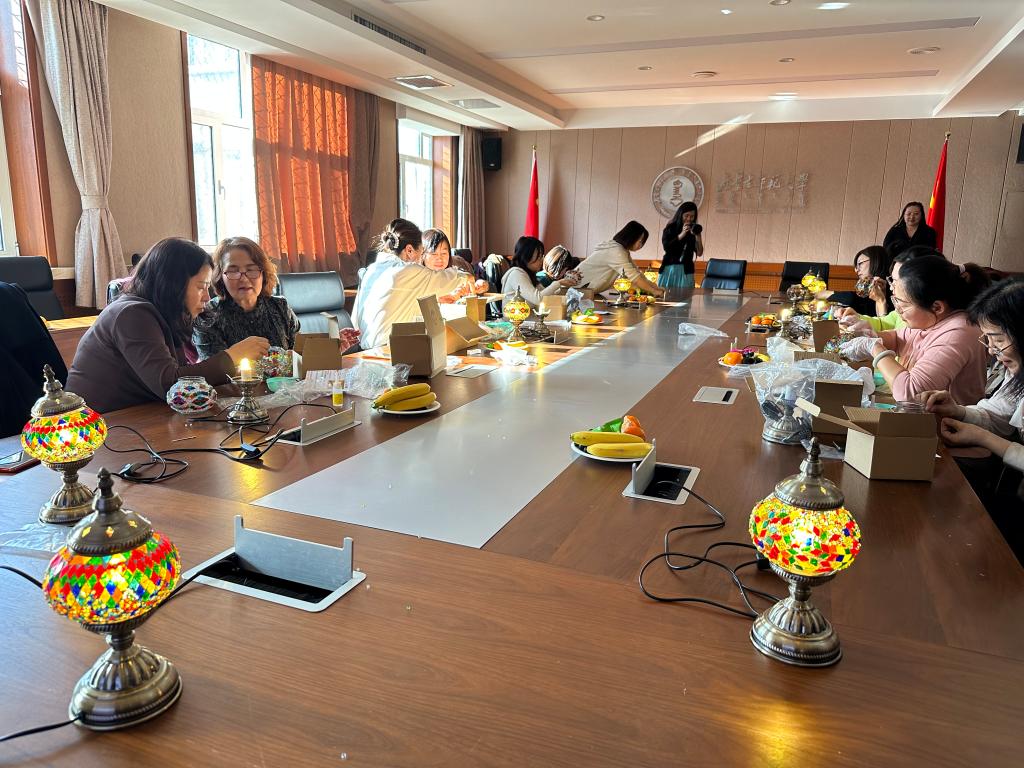 3月8日,为庆祝第114个“三八国际妇女节”,说球帝app 党委及工会精心组织了一场“靓丽女神节,巾帼半边天”创意琉璃灯手工活动,旨在丰富女教职工的文化生活,加强沟通交流,提升团队凝聚力,并为全体女教职工提供一个放松心情的机会。除有课奋战在教学一线的女教职工外,共有近20多名女教职工积极参与。