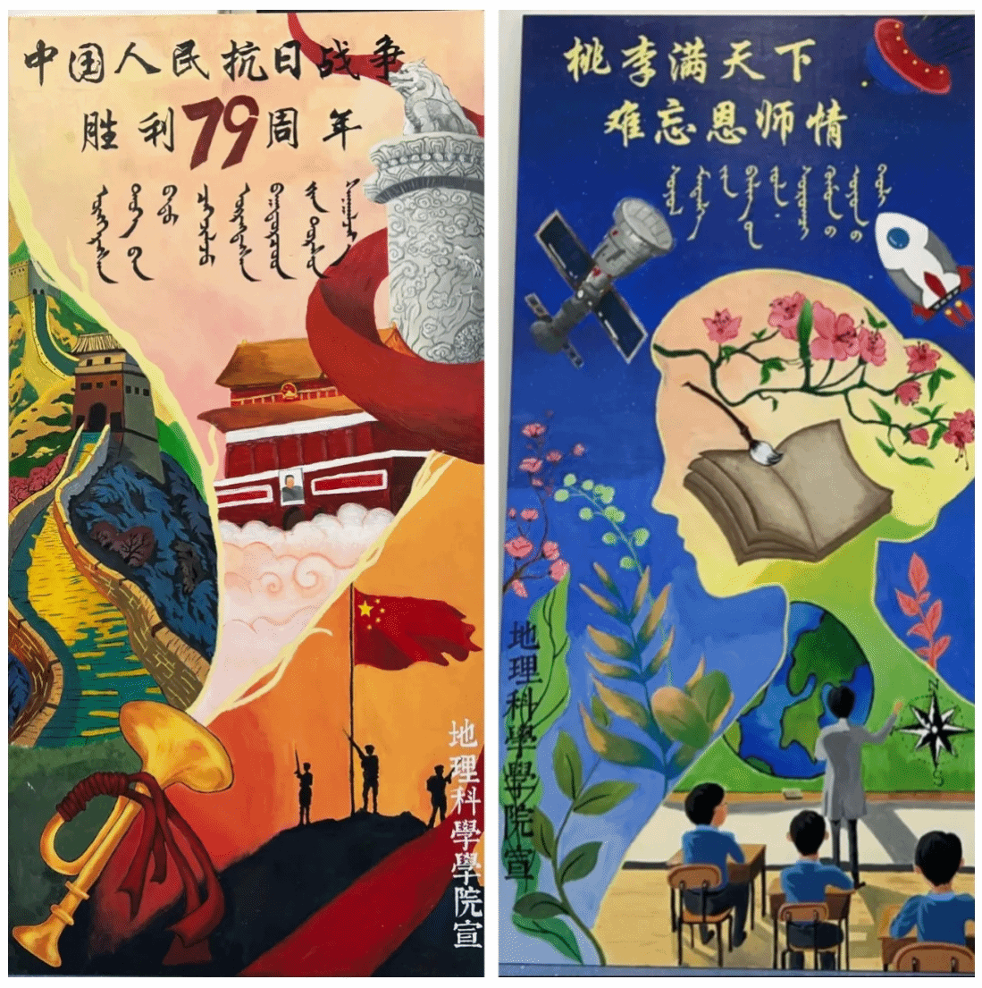 的风采,完成了“中国人民抗日战争胜利79周年”与“桃李满天下,难忘恩师情”俩幅作品,以表达抗日战争胜利的民族自豪感和对教师的敬佩之情。