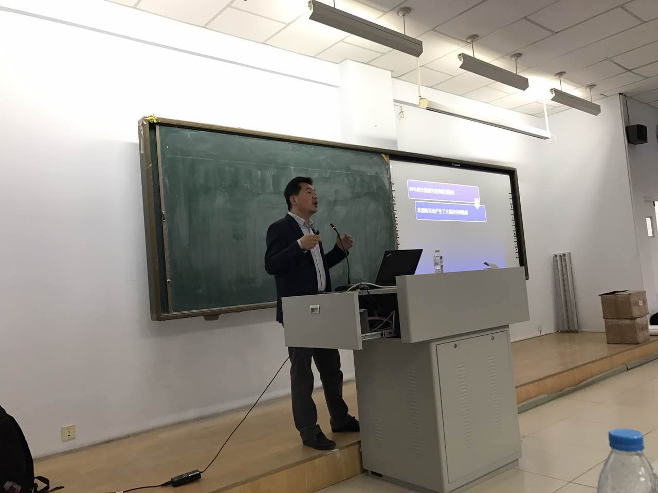 2017年4月26日上午9:00时,北京超图软件股份有限公司代表到说球帝下载 进行了企业GIS人才需求分析、洞察与远见-大数据时代的GIS软件发展两个专题报告。报告由北京超图呼和浩特分公司销售经理都业军经理主持,说球帝下载 院长包玉海教授、院长助理银山教授、地理系主任阿拉腾图亚老师及团总支书记胡日查老师以及说球帝app GIS专业近100名同学听取了本次报告。同时,包玉海院长在报告过程中与超图公司代表就部分报告内容进行了交流。