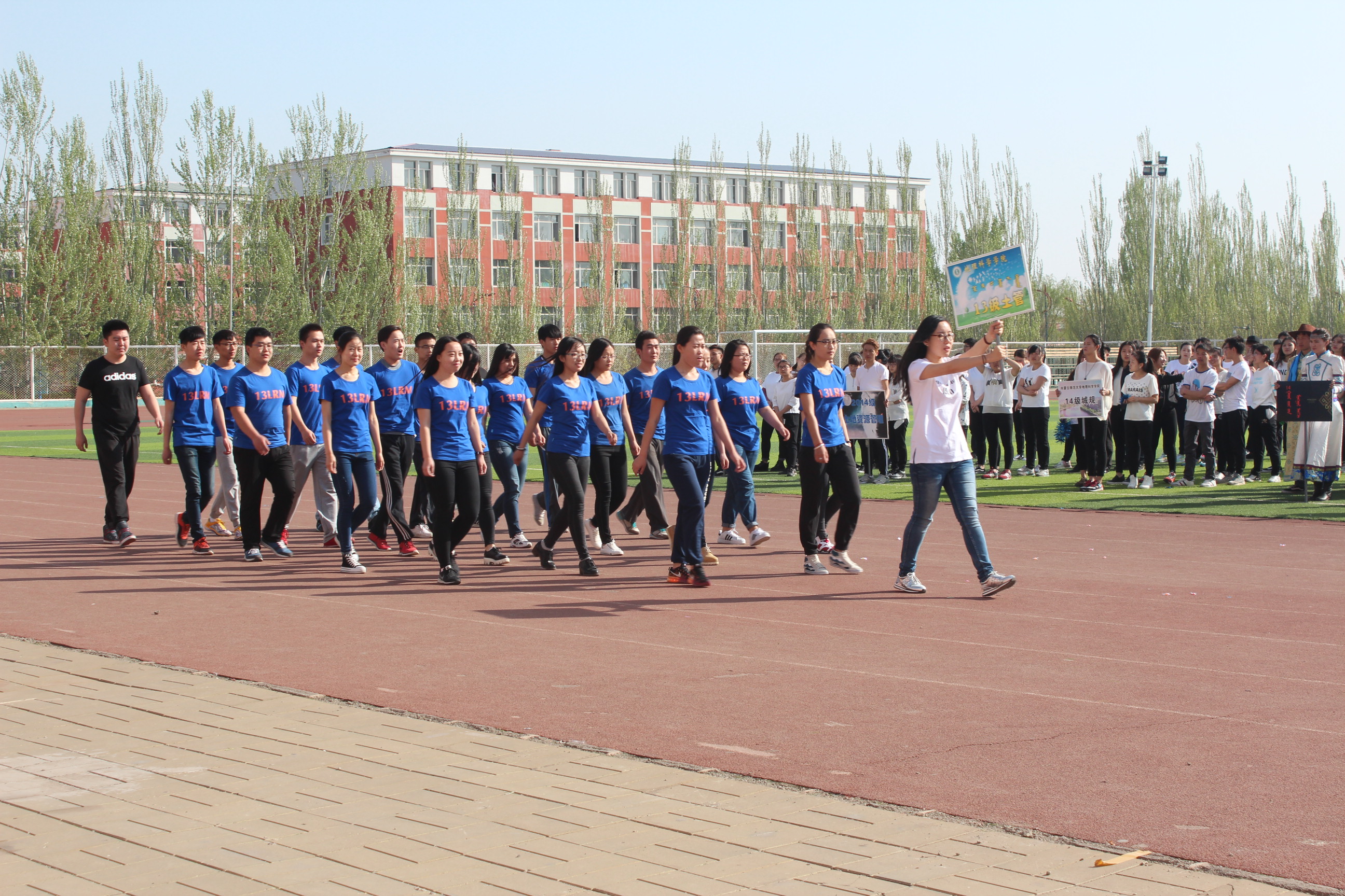 第32届田径运动会在盛乐校区田径场隆重开幕。院长海春兴教授,副院长张裕凤教授,党总支副书记李雨薇老师以及各班班主任参加开幕式。开幕式由胡日查老师主持。