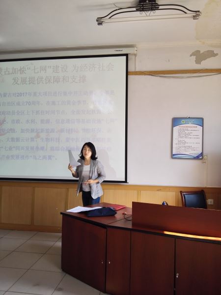 (2)内蒙古经济发展战略思想——“七网”同建 、“七业”同兴。教工党员应深入了解掌握内蒙古的经济发展动向,结合专业,着力为自治区的发展建设添砖加瓦。借助内蒙古自治区成立70周年的大好契机,自治区党委、政府动员全区上下抓住时间节点,2017年全面发起铁路、公路、航空、市政、水利、能源、信息通信等基础设施“七网”同建攻坚会战,加快掀起新能源、新材料、节能环保、高端装备、大数据云计算、生物科技、蒙中医药等战略性新兴产业“七业”同兴发展热潮,将综合基础设施建设和战略性新兴产业发展视作“鸟之两翼”。