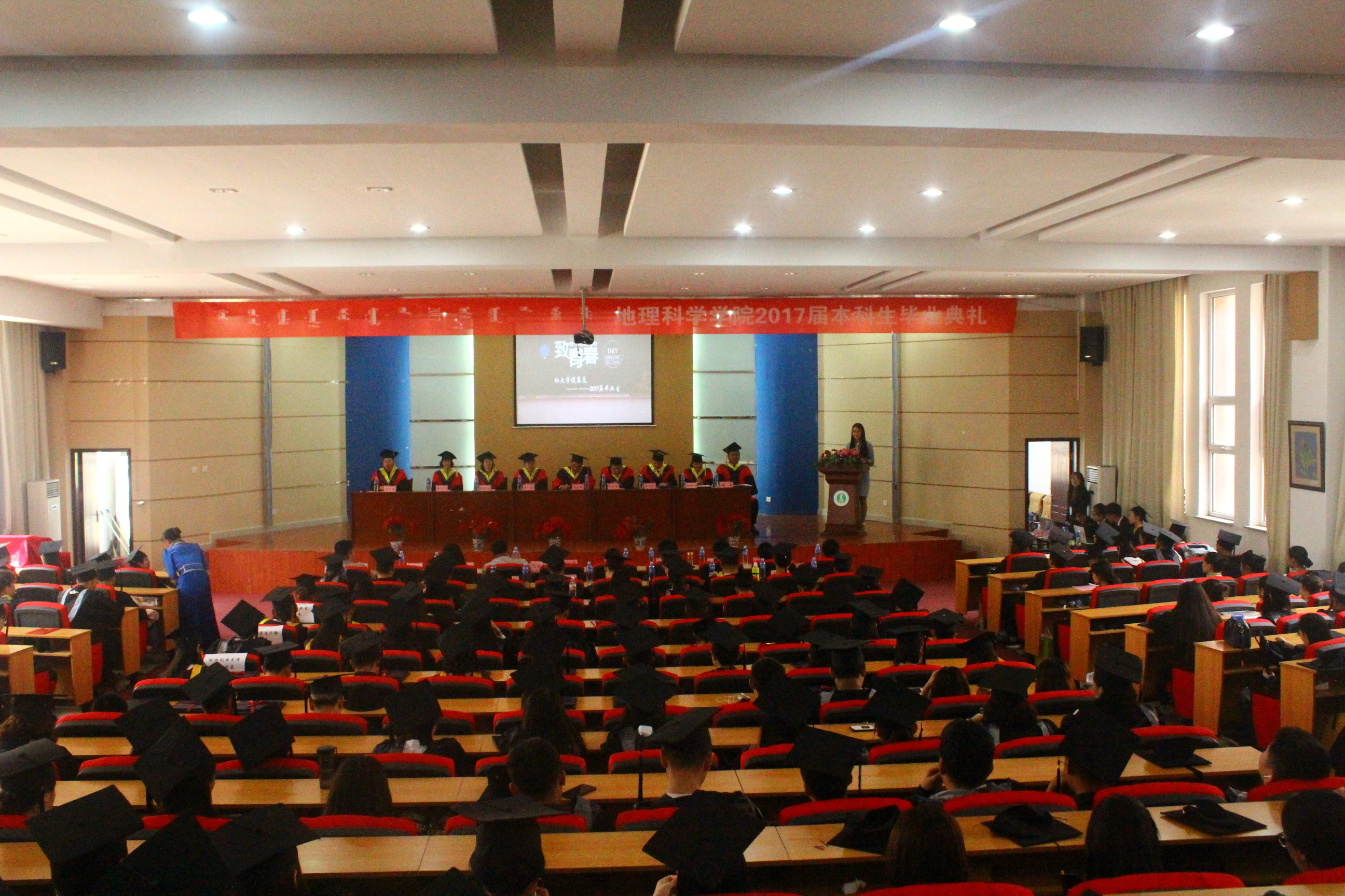 2017届本科生毕业典礼在盛乐校区科技楼报告厅隆重举行。内蒙古师范大学党委副书记、纪委书记高云峰研究员,内蒙古师范大学学生工作处处长斯钦研究员,内蒙古师范大学就业指导处副处长王志强教授,说球帝app