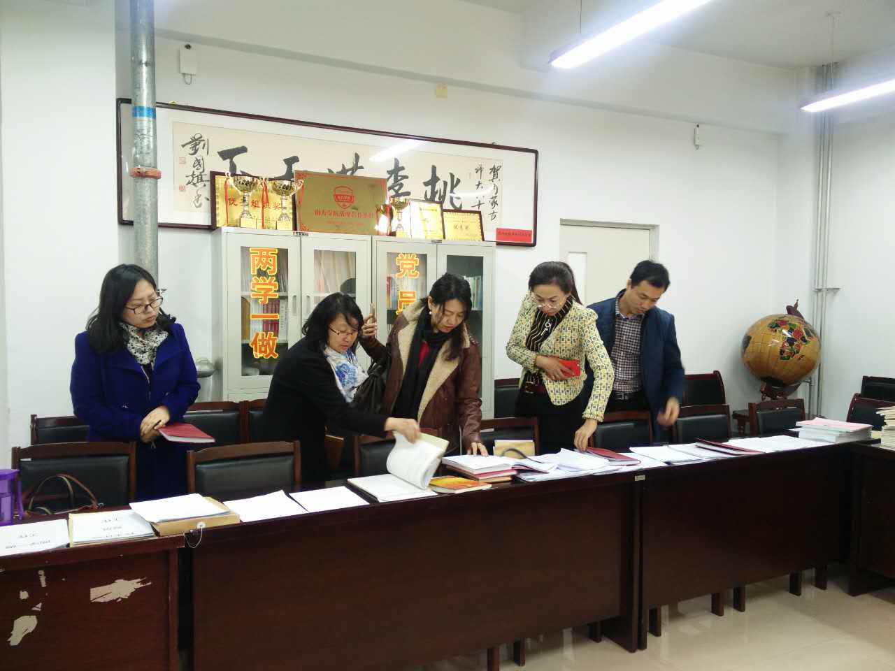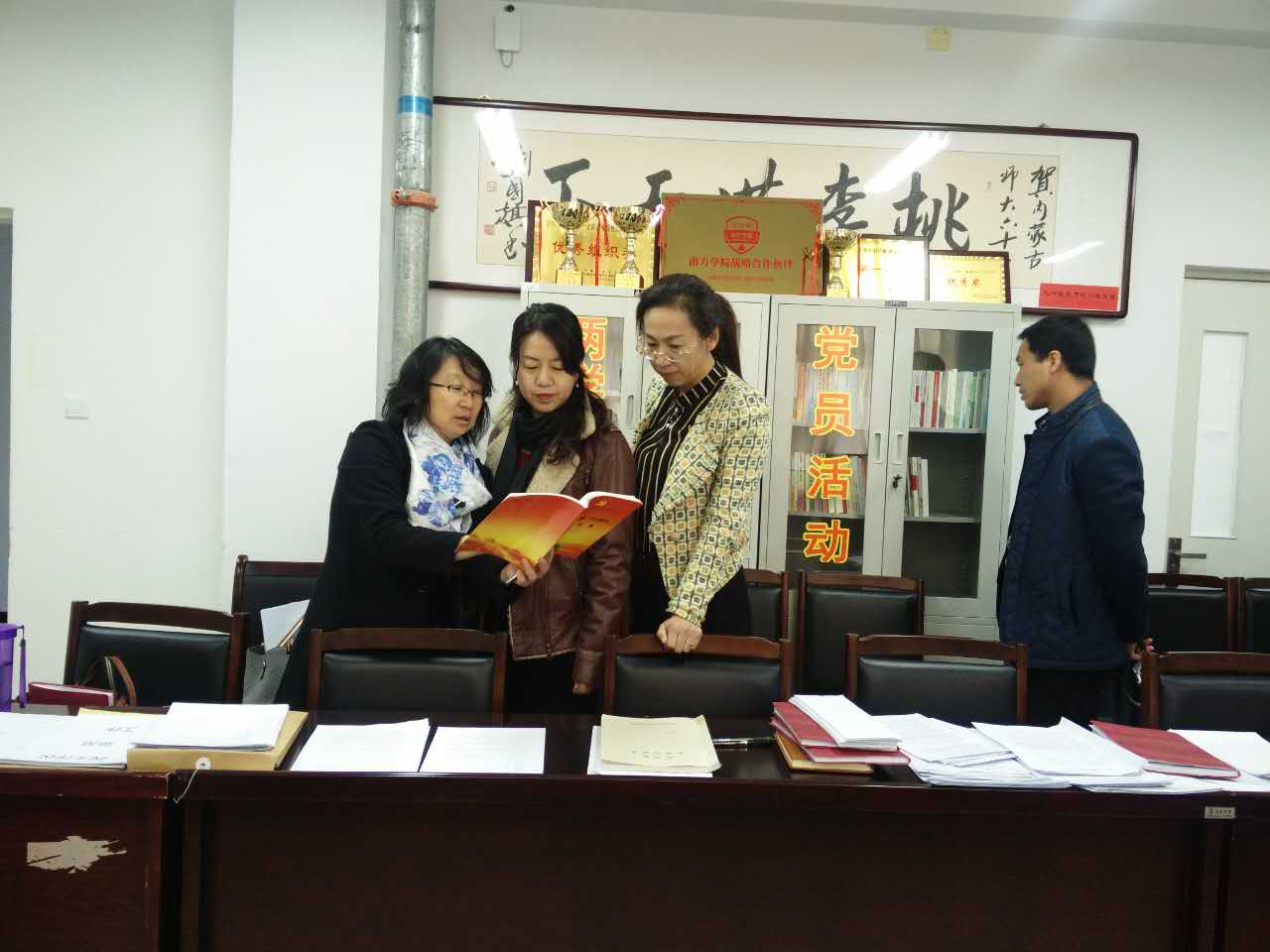 2017年3月10日,学校基层党建工作检查组来说球帝下载 进行工作检查指导工作。说球帝下载 张裕凤副书记(主持工作)、李雨薇副书记,胡日查老师,张惜伟老师参加了此次检查指导工作。张裕凤副书记代表说球帝app 进行了汇报总结,汇报结束后,检查组现场查阅了说球帝下载 党建工作材料。并与说球帝下载 导分别与教工党支部书记、学生党支部书记、教工党员代表、学生党员代表、学生积极分子进行了谈话。
