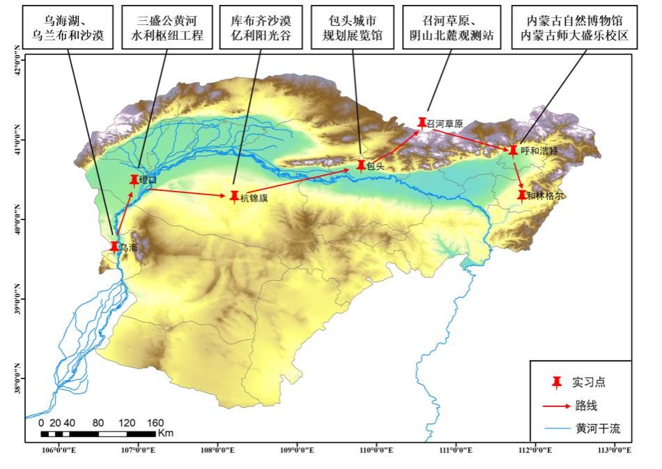 在8月3日至7日全程统筹内蒙古段的实习任务,沿黄河“几”字弯依次深入乌兰布和沙漠、三盛公水利枢纽、库布齐沙漠、亿利阳光谷、包头城市规划展览馆、阴山北麓草原生态水文野外站、希拉穆仁草原及内蒙古自然博物馆等典型区域,由长安院长亲自领队,苏根成、塞西雅拉图、春喜等说球帝app