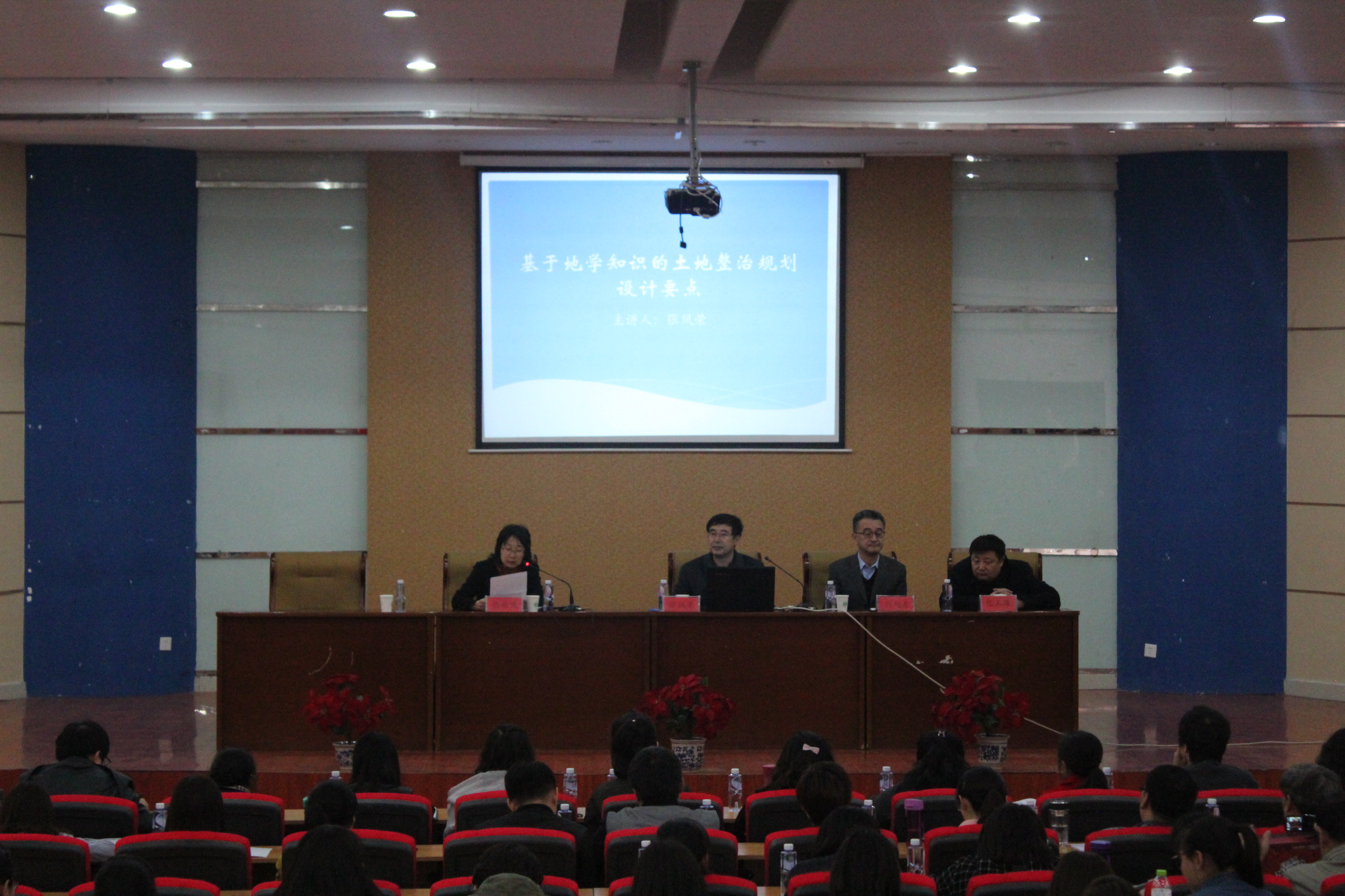 师生作了题为“基于地学知识的土地整治规划设计要点”。张凤荣教授从地学知识的角度,分析了气候条件、地貌岩石类型、水文条件、土壤类型等因素对土地整治工程设计的影响,提出土地整治工程要根据区域地学特点因地制宜地进行规划设计与实施,并就师生提出的“黄土丘陵区土地整治方向”、“碱性土的治理”等土地整治热点和难点问题做出系统的专业解答。