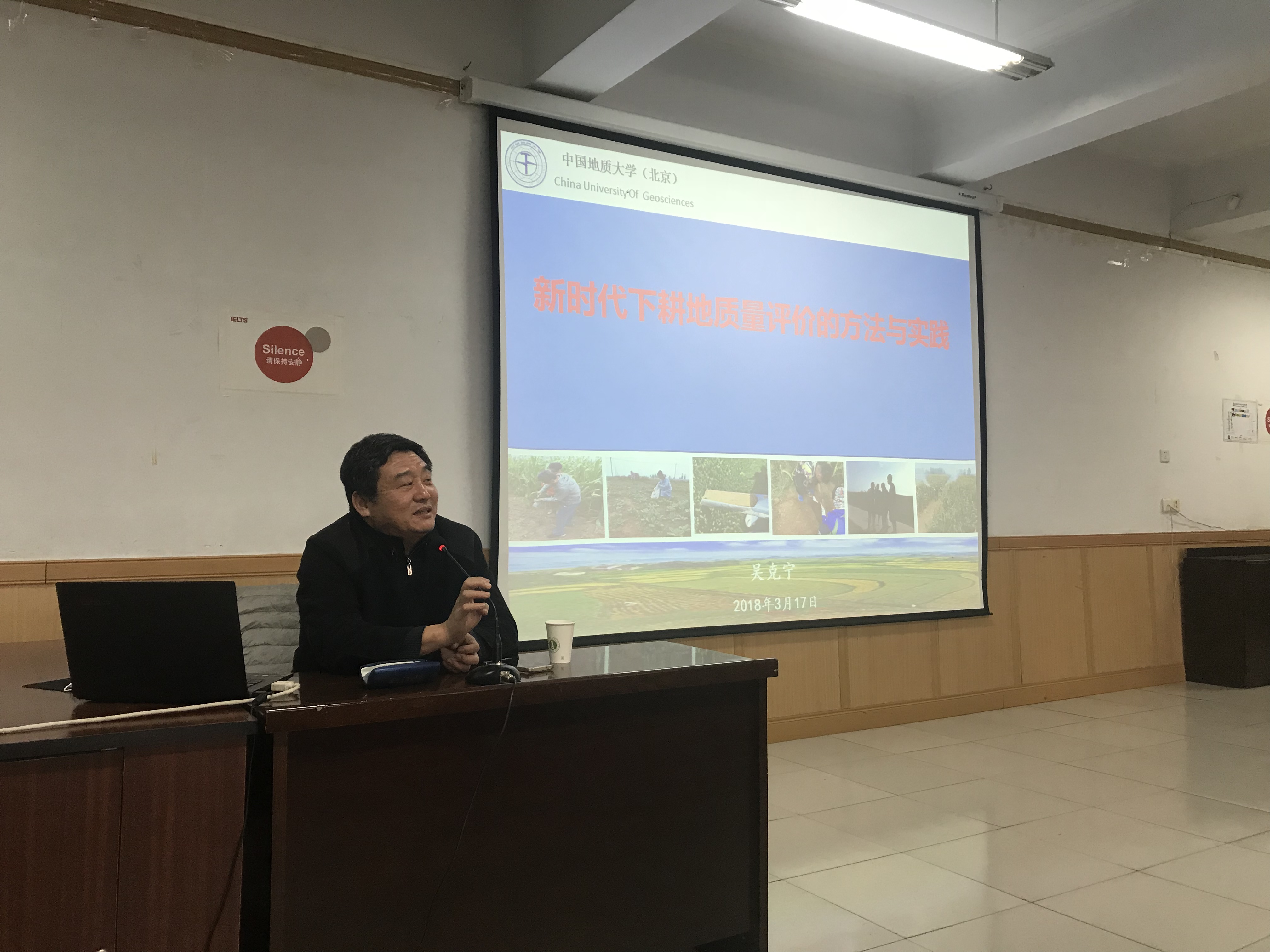 教授、中国土地学会常务理事、学术工作委员会副主任、中国土壤学会常务理事、土壤发生分类与土壤地理专业委员会副主任,北京市土壤学会副理事长、教育部公共管理教学指导委员会土地资源管理分委员会副主任吴克宁于2018年3月17日下午在文史楼1号会议室,做了题为《新时代下耕地质量评价的方法与实践》的学术报告。说球帝app