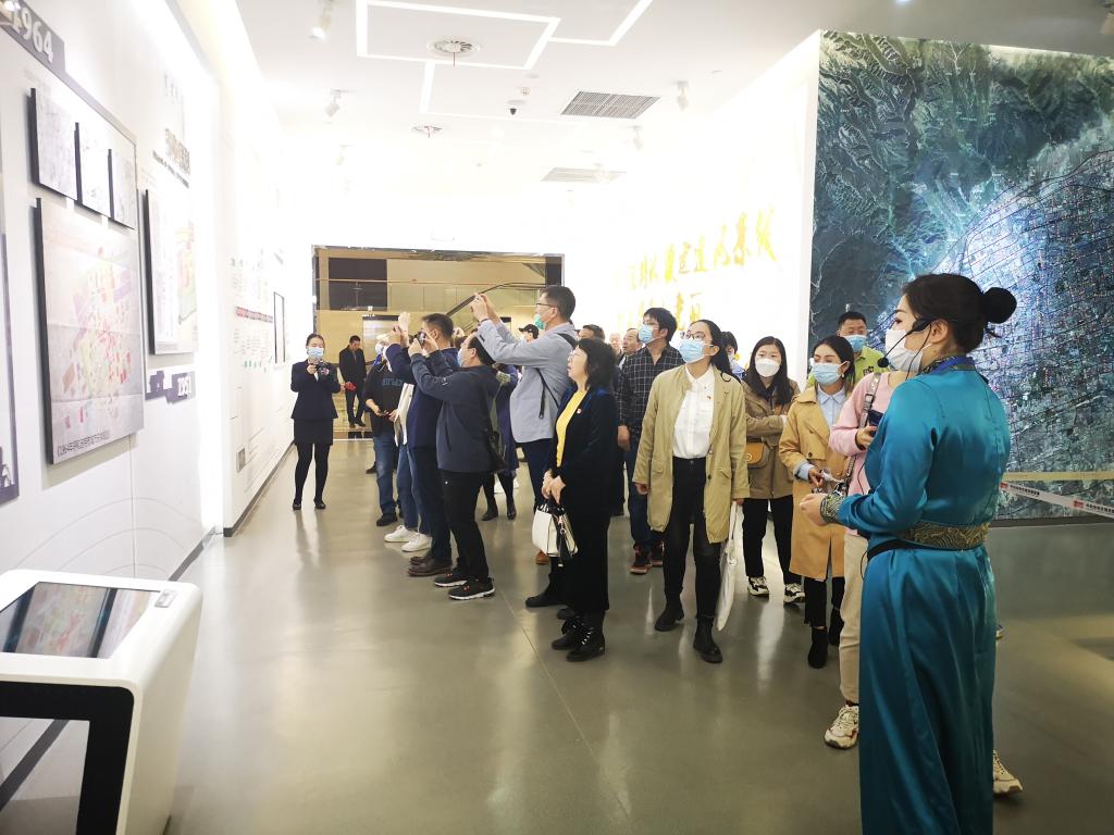 呼和浩特市规划馆位于城市东部新区,北临新华大街,西临二环东路,总建筑面积约21434平方米,共三层。规划馆以“城市、人居、和谐、发展”为主题,展示呼和浩特的建城历史、规划建设、发展成就、民俗文化和历史文化名城及非物质文化遗产保护等内容。党员教师跟随讲解员的脚步,先后参观了历史展厅、城市概况厅、城市发展厅和建设成就厅、总体规划厅、专项规划厅、城市设计展厅等多个展厅,在展馆声光影及电子互动系统、LED数字沙盘、全息成像系统等先进科技手段的运用演绎下,党员教师们听得认真、看得仔细、印象深刻,对呼和浩特市城市发展的历史脉络、城市概况及特色、城市规划发展历程都有了更加清晰和真切的认识,获益匪浅。