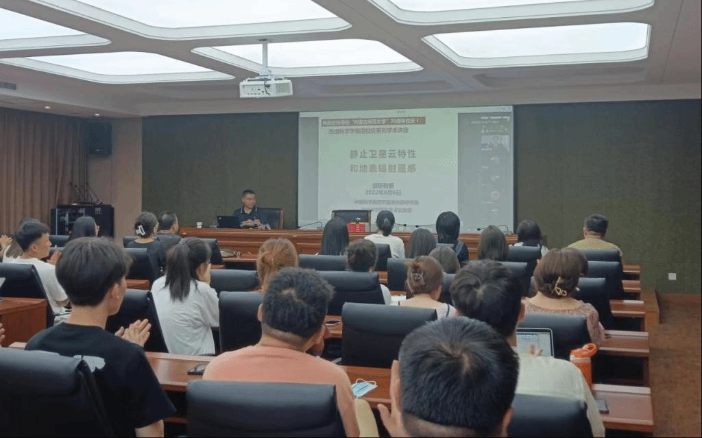 为喜迎我校70周年校庆,我院于2022年8月6日在文史楼一号会议室举办了主题为《静止卫星云特性和地表辐射遥感》的迎校庆系列学术讲座。本次讲座邀请知名校友胡斯勒图主讲,学院副院长萨楚拉教授主持,部分师生参会聆听了讲座。
