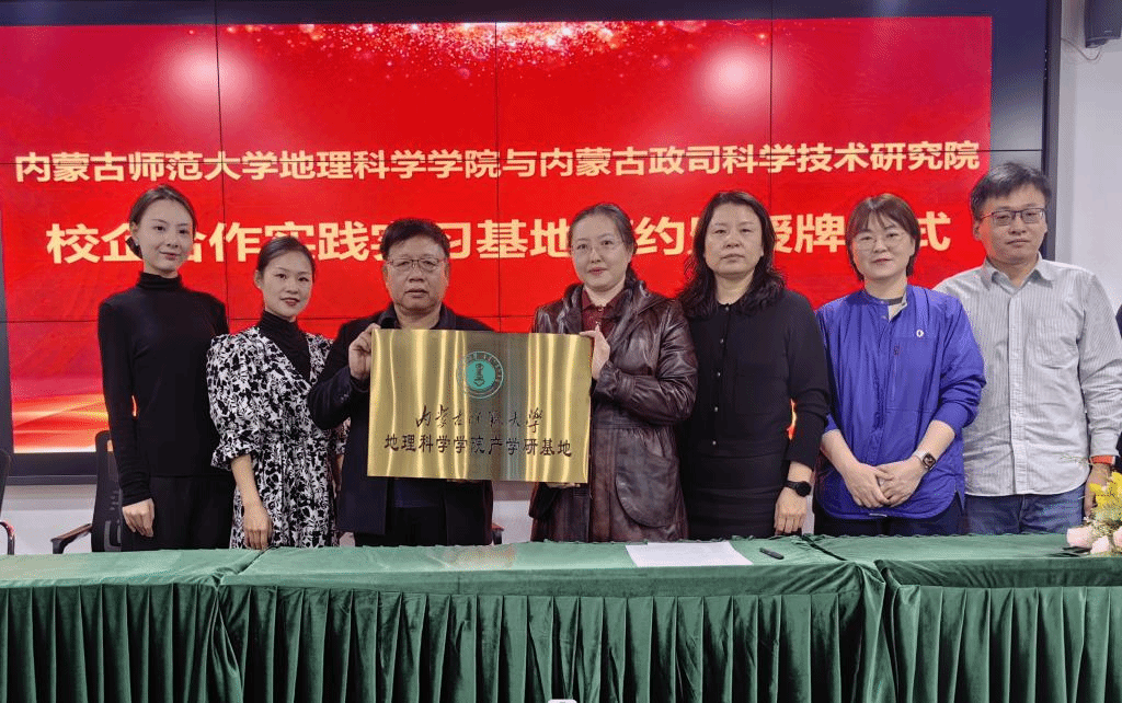 教学与科研办公室主任王鸿鸽老师,国土资源系主任王考老师、地理系主任阿荣老师,地理系副主任郭恩亮老师和朝莉雅老师赴内蒙古司科学技术研究院签订了实践实习基地协议,并举行了实践实习基地挂牌仪式。