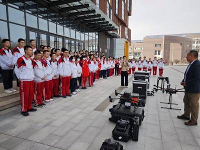 本次活动以“学科融合+思政引领+职业启蒙”三维突破打造科技教育新范式—物理课堂上的“无人机电磁波原理”揭开遥感数据的神秘面纱,让科学逻辑照进现实;通过对比呼和浩特低空经济园区规划图与草原退化遥感影像,引导学生用辩证思维破解“生态保护与经济发展”的治理难题,厚植家国情怀;当包刚老师团队操控DJI M300行业无人机腾空而起时,震撼的不仅是设备性能,更是学子们对“无人机工程师”职业价值的全新认知:“原来技术突破能直接服务国家重大项目!”这场跨越学科、链接产业、贯通大学的实践课,正为边疆少年打开通向未来科技疆域的窗口。